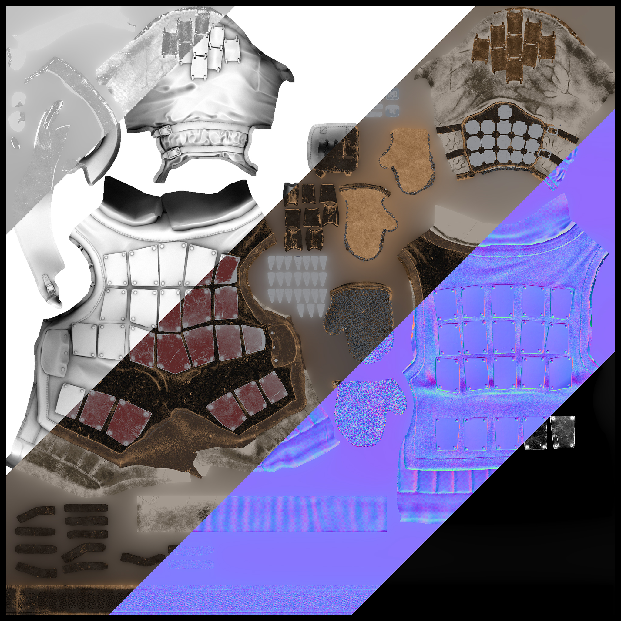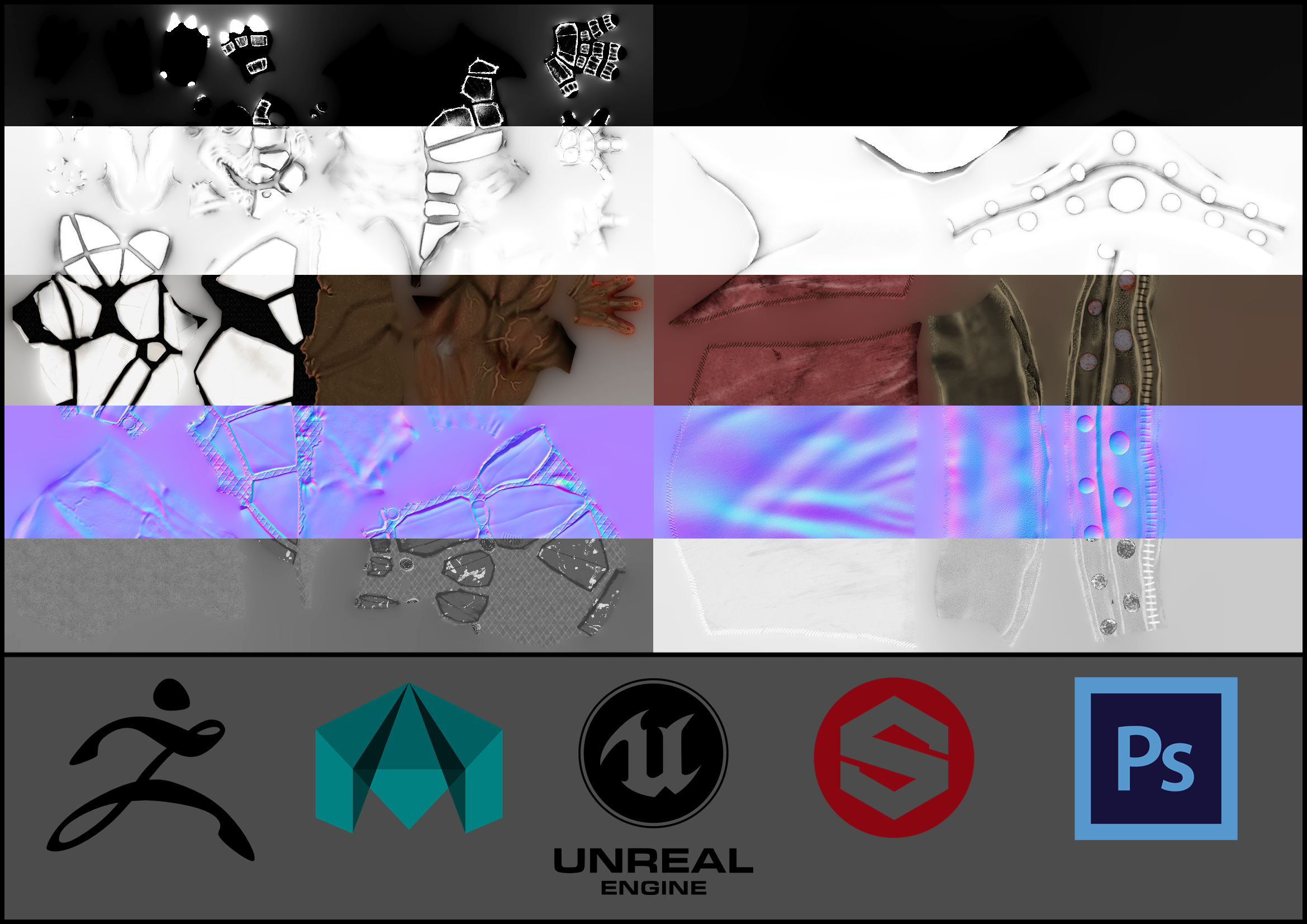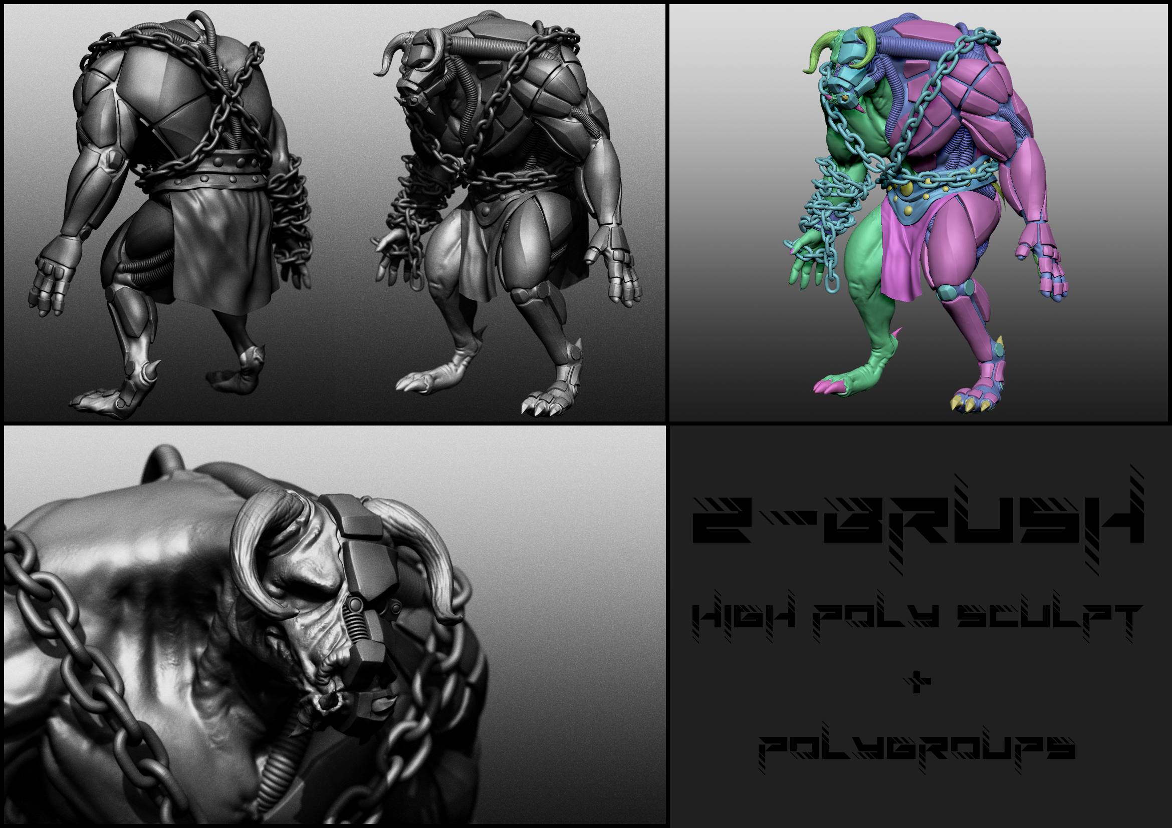Project focused on character design. Sculpting, retopo, texturing, rigging and rendering done by myself. Meshes and materials were also optimized for real time rendering.