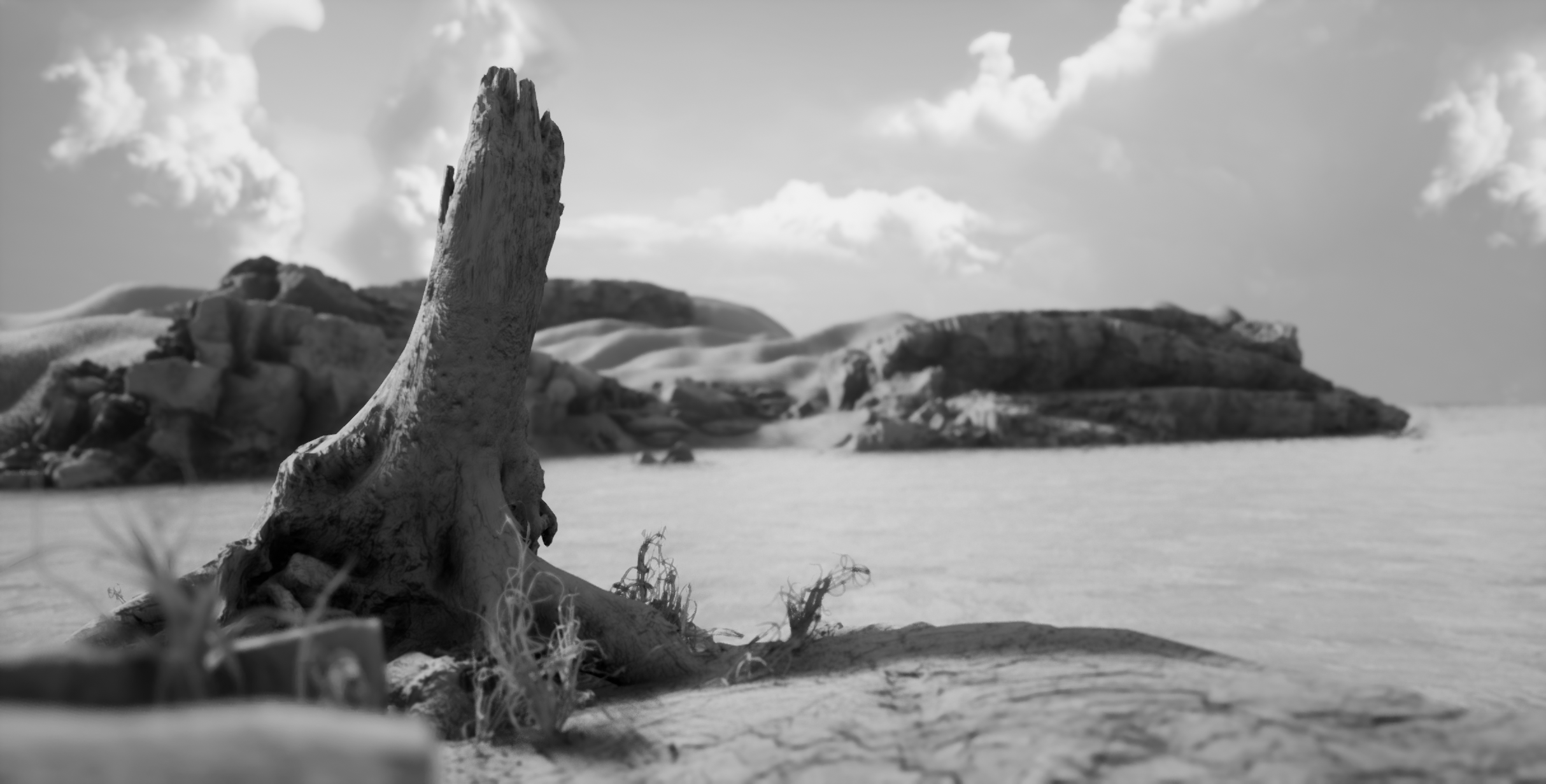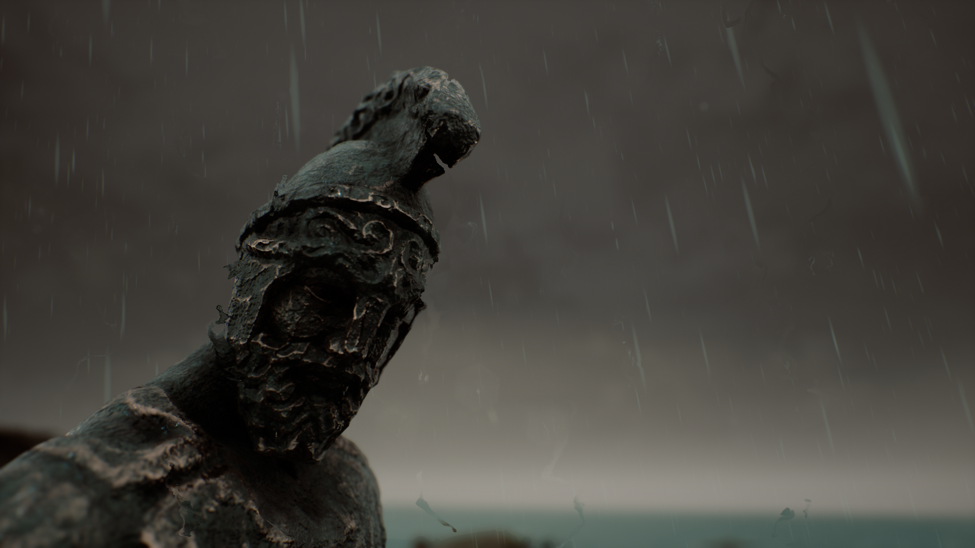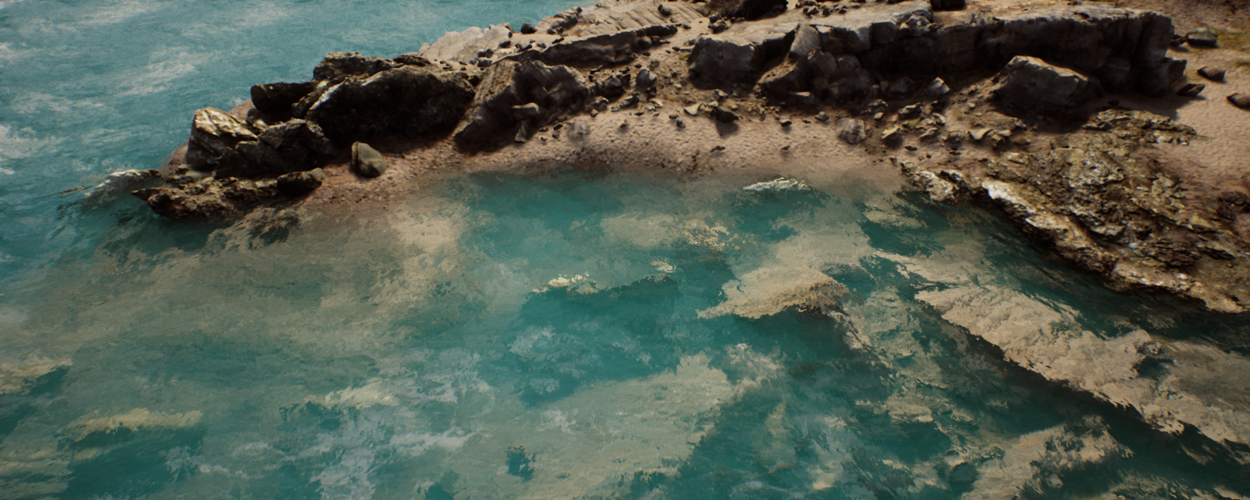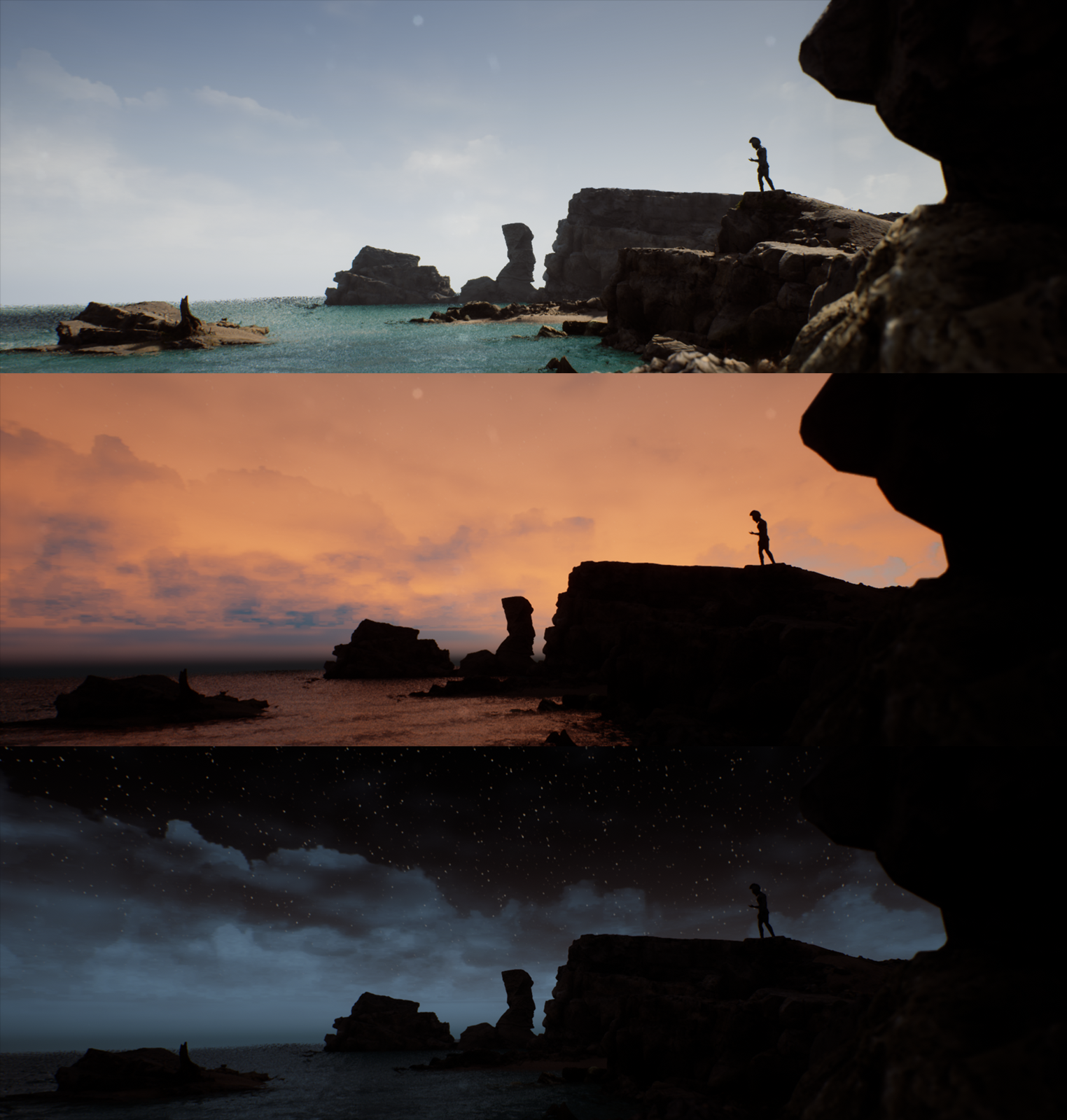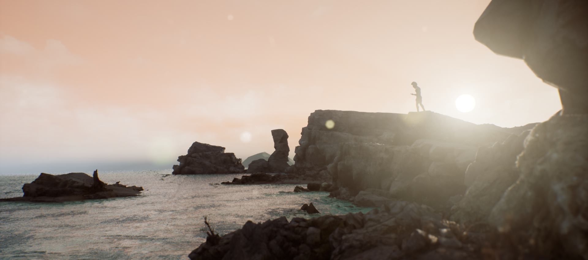 Environment based on rocky shores of Crete. Since project was focused on realtime lighting and rendering, most of the environment assets were outsourced from Quixel Megascans. Custom POM materials, ocean shader and LODs for some meshes were created by myself. Scene runs smoothly at 100+ FPS on mid-end PC with full dynamic lighting (no cooked lights, optimal for games with day/night system).