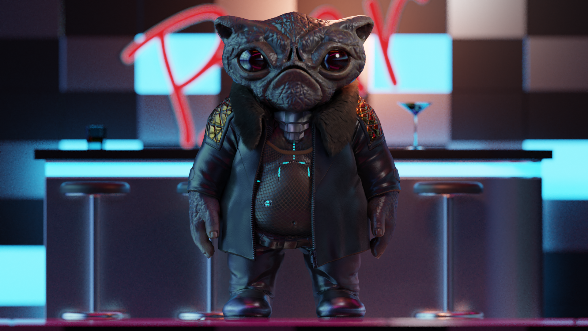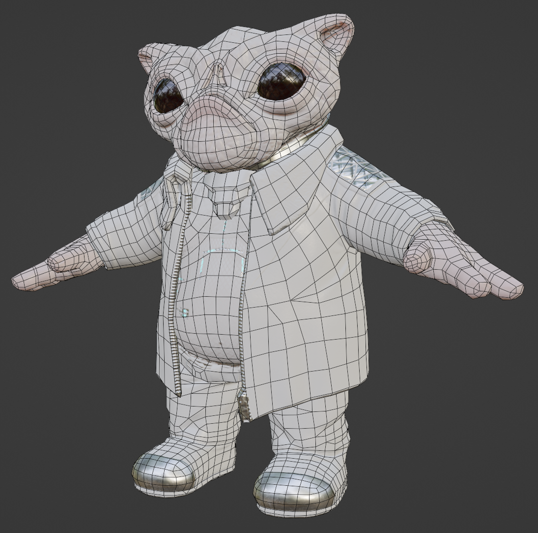 There was not particular direction/heading with this one, except “Cyberpunk” theme. So I’ve decided to do some cyberpunk character. I had nothing particular in my mind, so I started concepting in the Zbrush and ended up creating some cyberpunk pug-alien creature. Cyberpug. Game ready asset – 9595 tris.