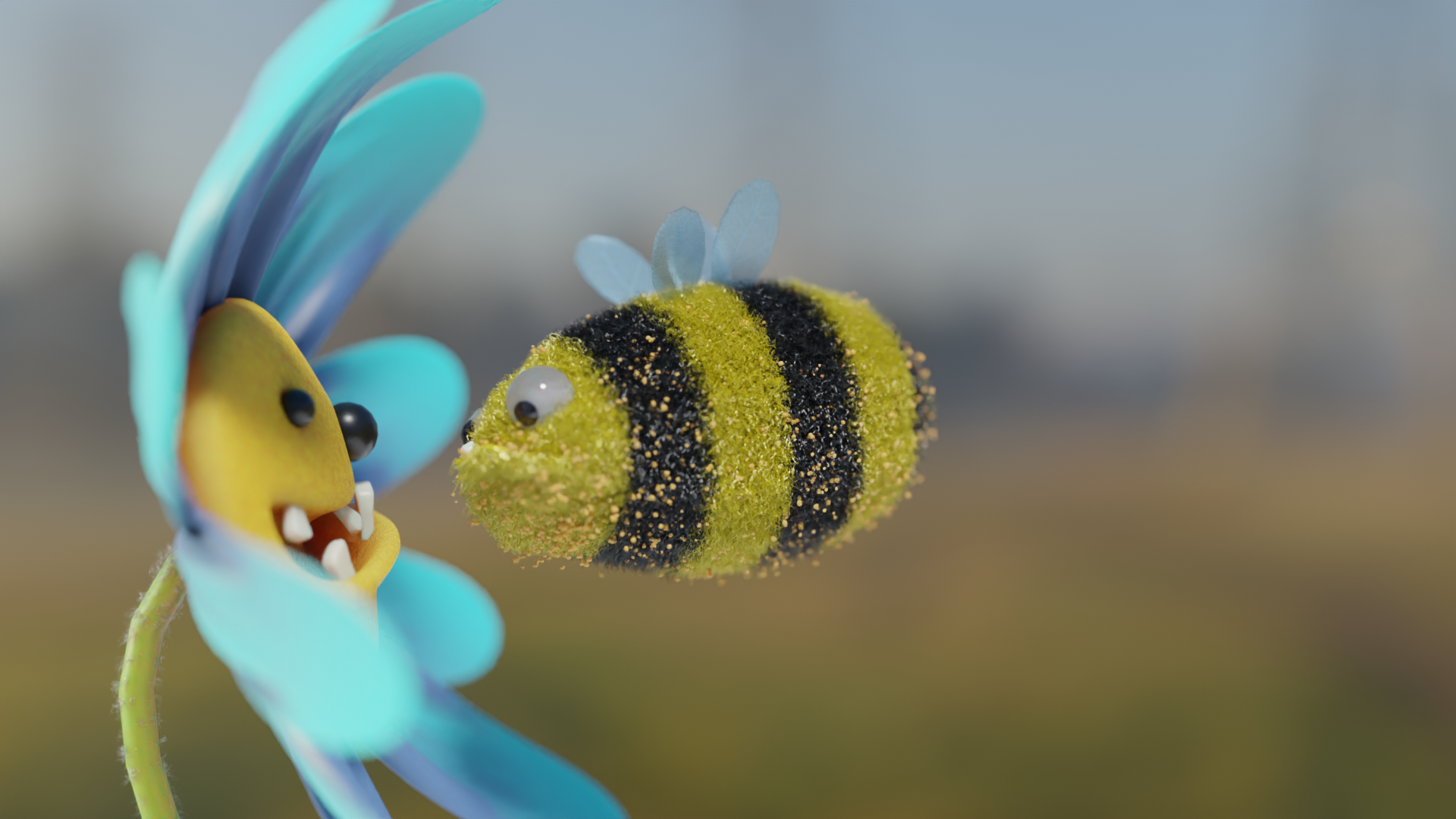 Pure boredom. Been sick at home, bored, and wanted to create something. At first I created a wee bee only, but she was lonenly, so I’ve decided to create wee fower as well. Created in Blender. Subdivision modelling, not suitable for real time rendering. Maybe not a portfolio piece, but I like it.